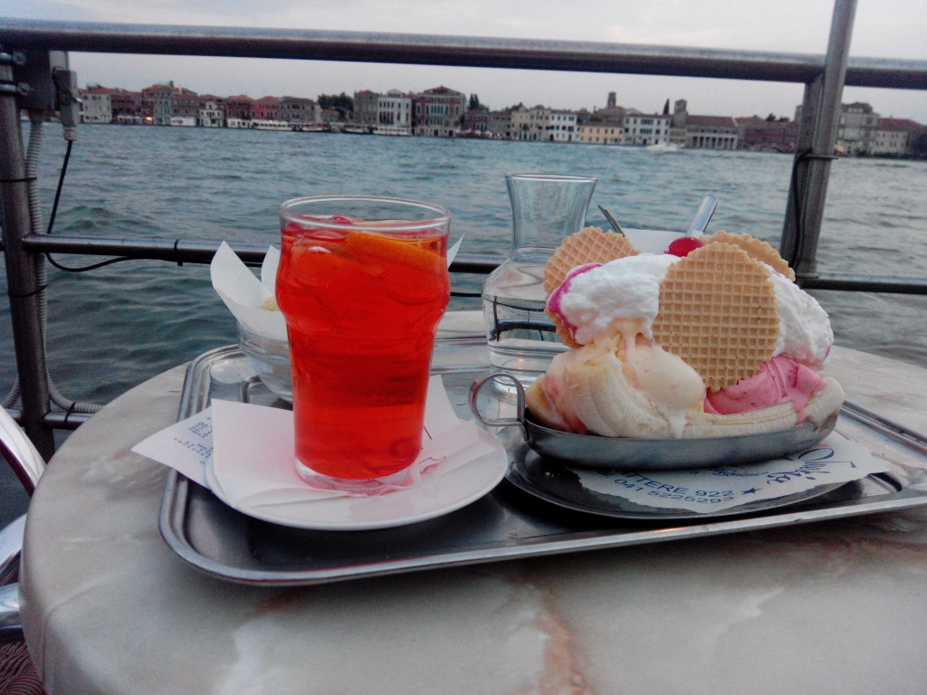 Ou finir au quai « Zattere » qui constitue tout au long de ses 1 500 mètres une des promenades les plus agréables de Venise. Dans ce quai, vous pourrez boire un verre en fin de journée avec une vue formidable :
