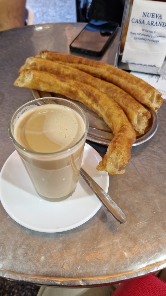 Churros are a classic in Spain. It is fried pastries, crispy on the outside and soft on the inside, often sprinkled with sugar and served with hot chocolate or caramel.