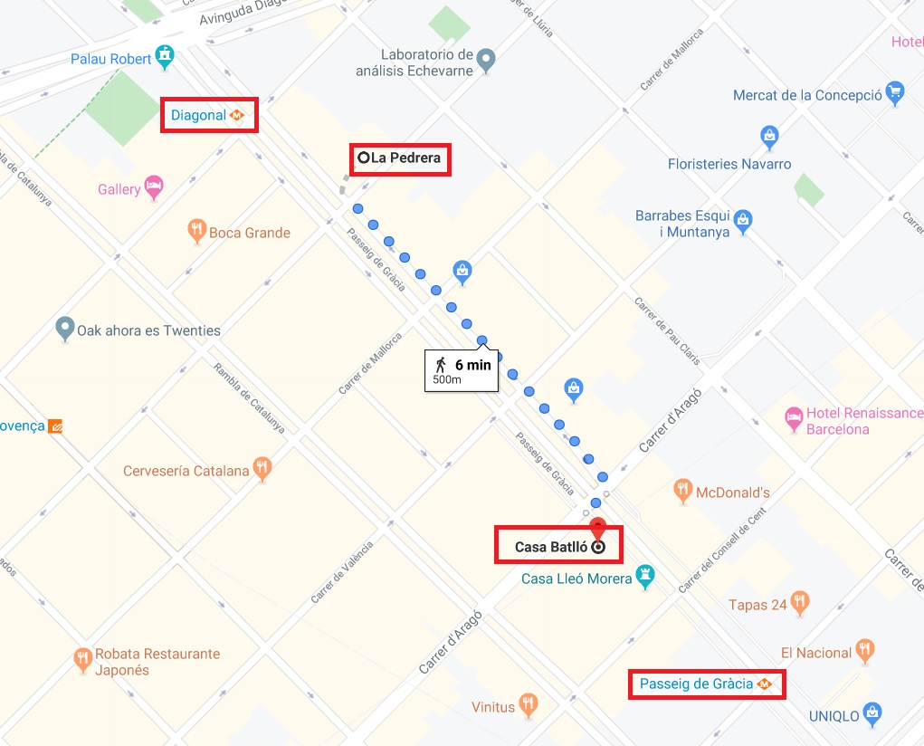 These are two works of Gaudi on the big avenue « Passeig de Gràcia »