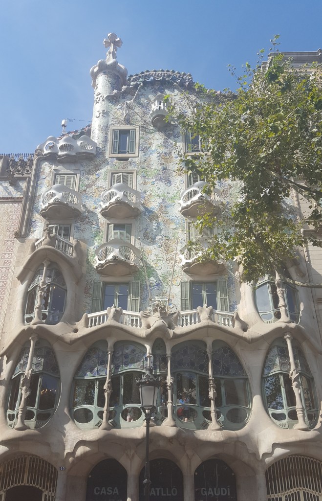 Casa Batllo is a building renewed by Antoni Gaudi. It has a facade that can be seen as human bones shaped or as venetian masks. The monument is used today for exhibitions or private events.