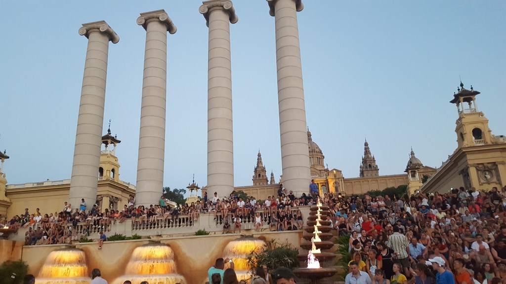 The Montjuïc Fountain is located in Maria Cristina Avenue. It is the main element of a set of light and water games that illuminates the axis between the National Art Museum of Catalonia and Plaza de España.