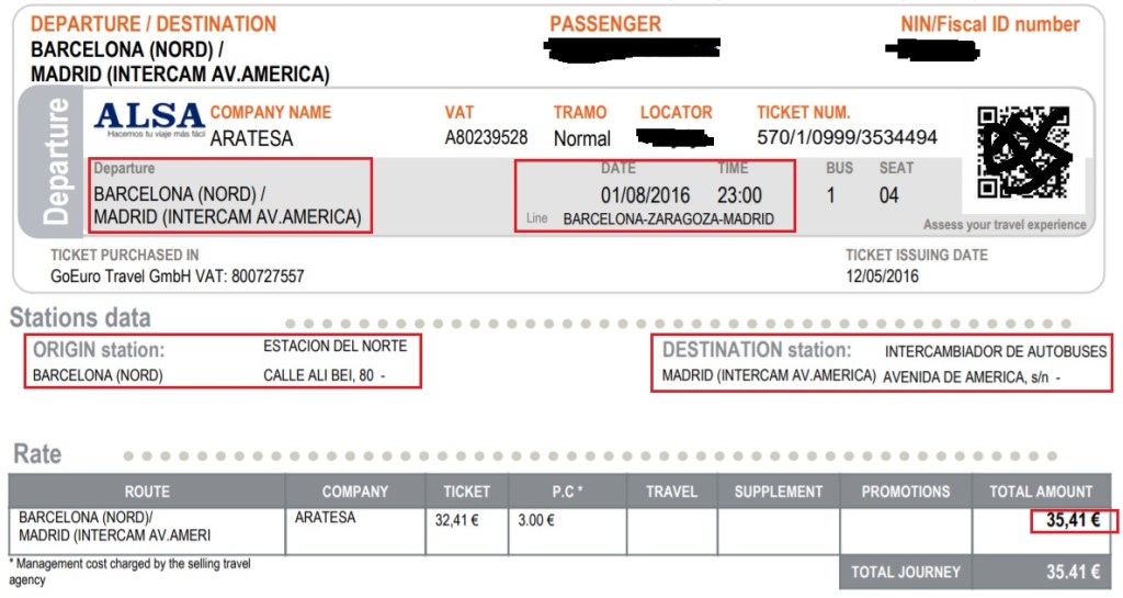 - We took the bus to go from Barcelona to Madrid, the night of 01/08 to 02/08