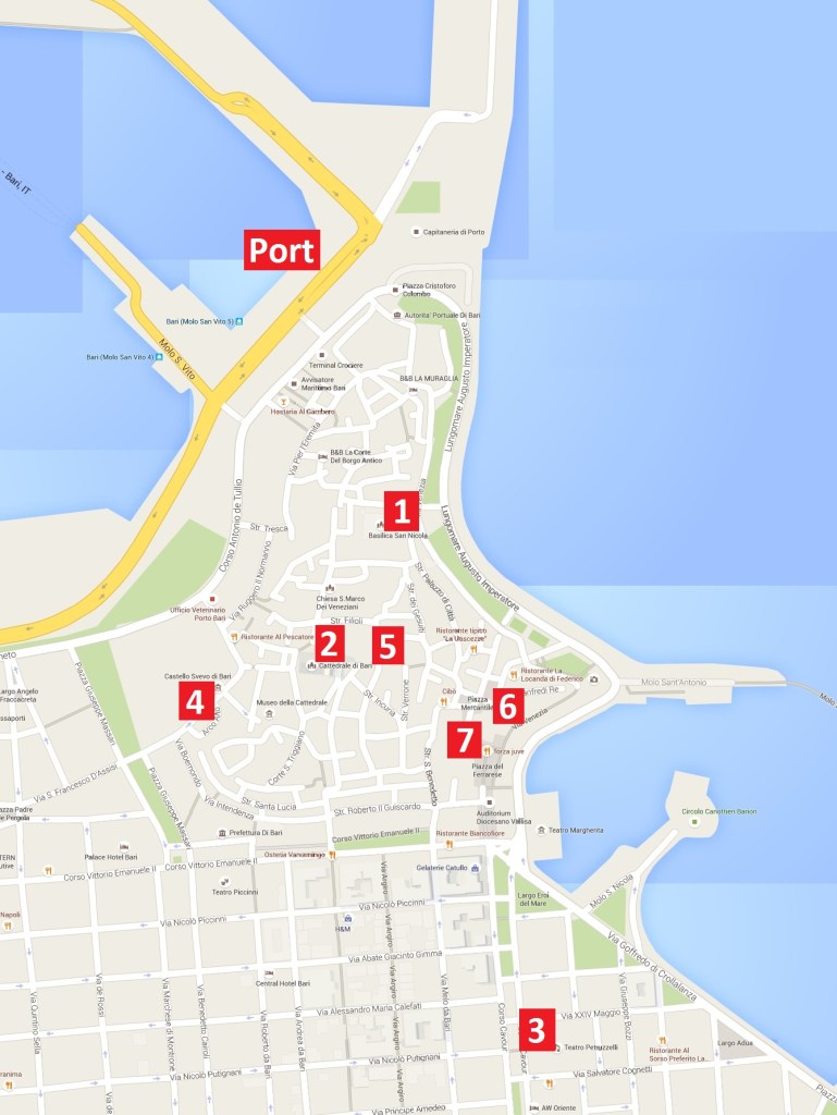 Nous arrivons à Bari le 10/08/2015 à 14h00, nous avons moins de 6 heures pour visiter la ville. Le départ est fixé à 20h00.