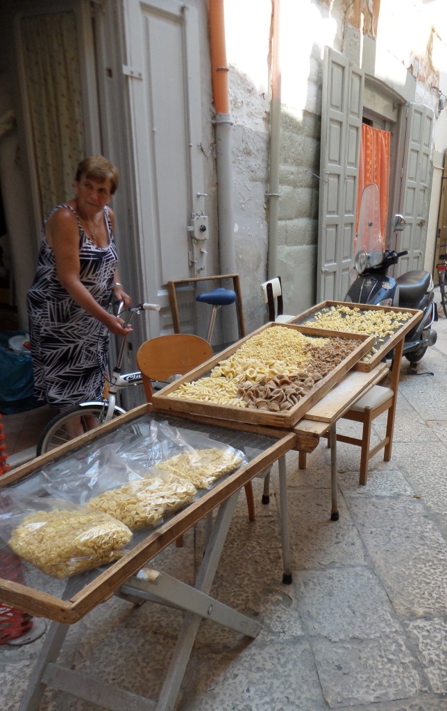 En vous baladant dans les petites ruelles de Bari, vous pouvez croiser le « Mamma » italiennes (mamans) qui préparent les pâtes fraiches dans la rue :