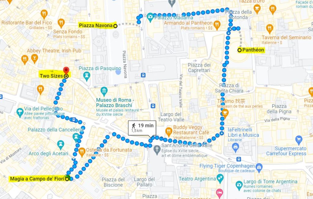 We ended up at a tiramisu shop known to be the best in Rome: « Two Sizes » (88 Via del Governo Vecchio : 41°53’52.9″N 12°28’17.7″E). It’s a delight :