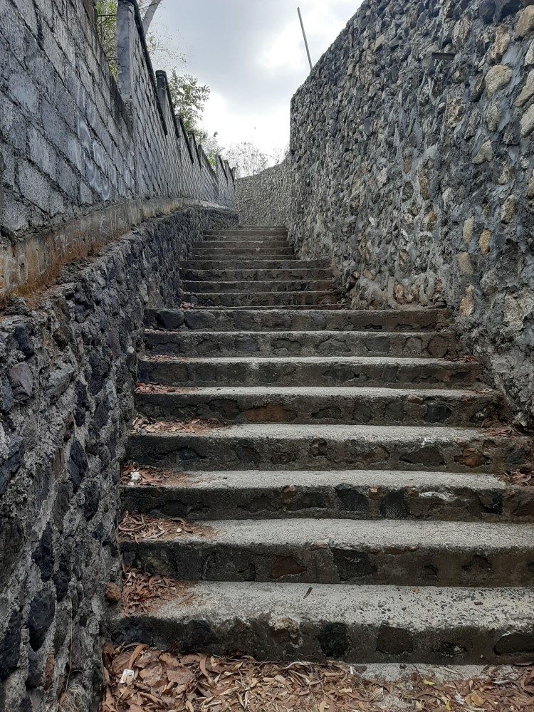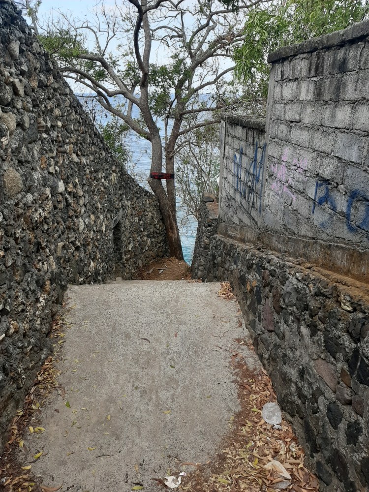 Our driver tells us that he does not know this beach, we show him the address via GPS. We arrive there around 3:00 p.m. We go to the beach, we have to pay 10,000 Rp (0.7 €) per person to access it. There are a few steps to descend before you can see the bay.