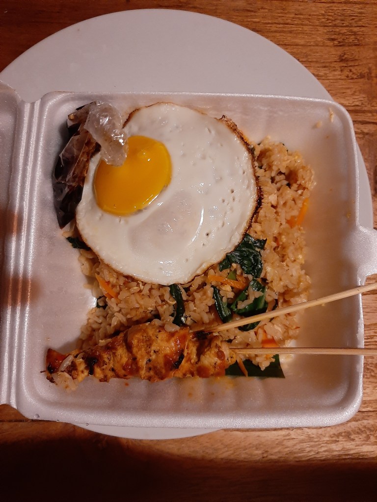 There are some Warungs who share the small beach, we choose one for lunch. Anyway, they offer almost the same service. We paid 60,000 Rp (4 €) for 2 noodle and a Bintang: We find again the attractive prices of Bali after Gili 🙂