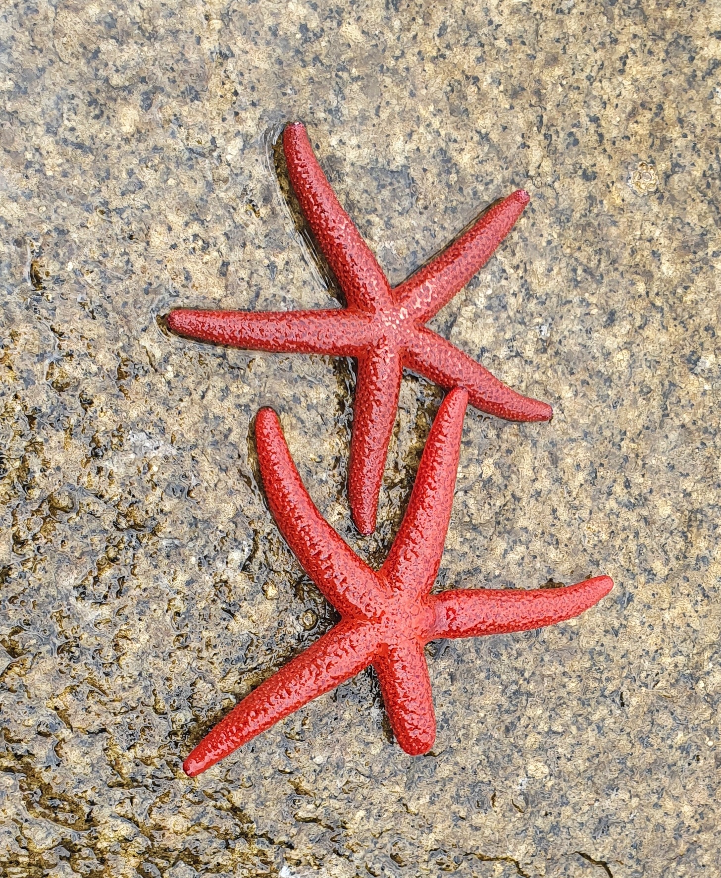 It is a beautiful little rocky beach. Today’s weather is not sunny, it is not easy to judge the color of the water, but we like it.