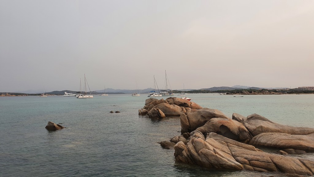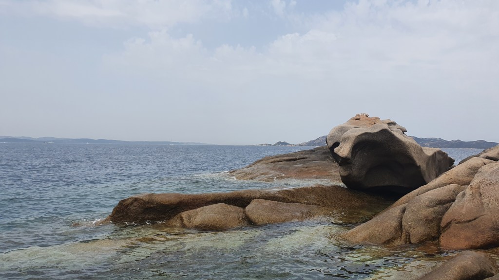 We don’t have too much time left before nightfall, we take a look at « Cala Serena » and decide to go swimming in « Spiaggia Cala Coticcio ». We had to park 15 minutes walk away from the beach. The walk is quite easy, do not be discouraged. We arrive and discover a magnificent rocky beach. The lack of sun spoils the view a bit.
