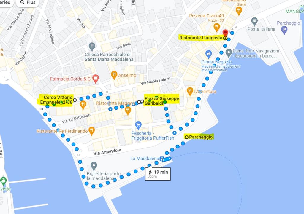 While having the walking tour, we choose a small restaurant : « Ristorante L’aragosta » located opposite the port: 38 Via Amendola (41°12’49.7″N 9°24’29.0″E). The prices are fair and the food is quite good.