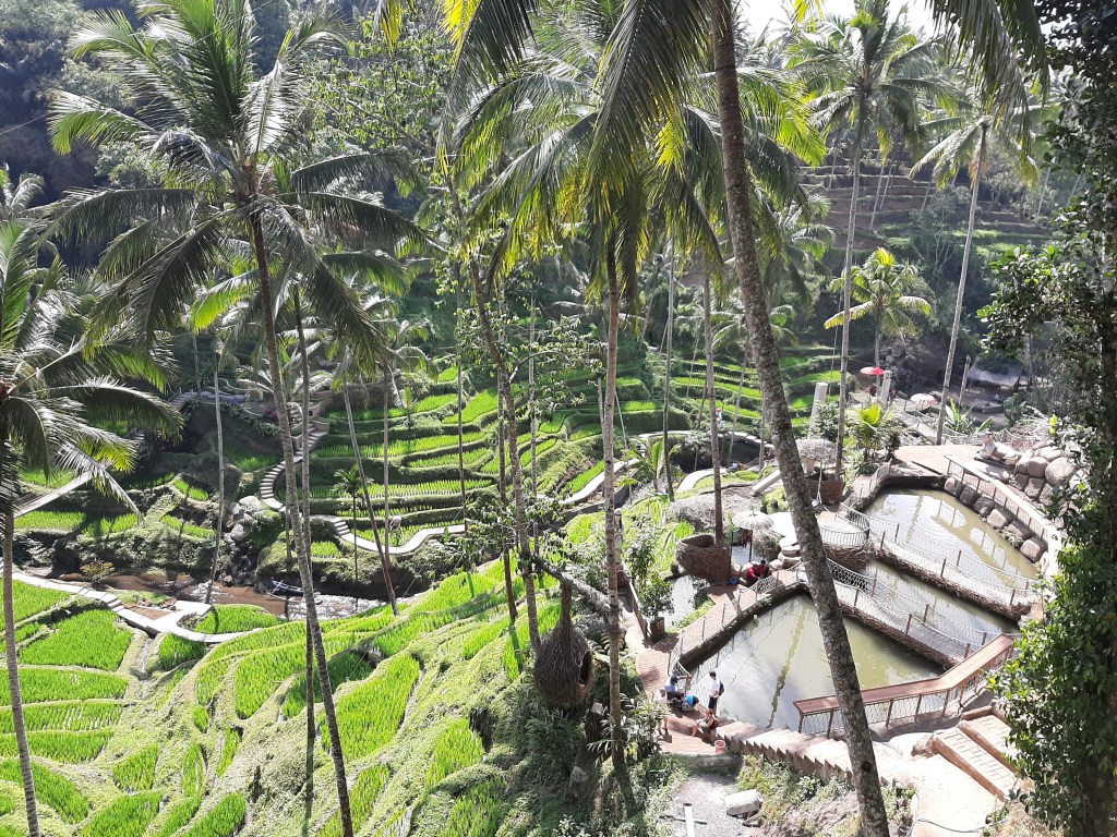 About 600m north, we stop to discover the rice terraces: « Tegallalang Rice Terrace ». You have to pay 10,000 Rp (0.7 €) per person for access. The landscape is impressive. You can walk between the rice plantations, take photos…