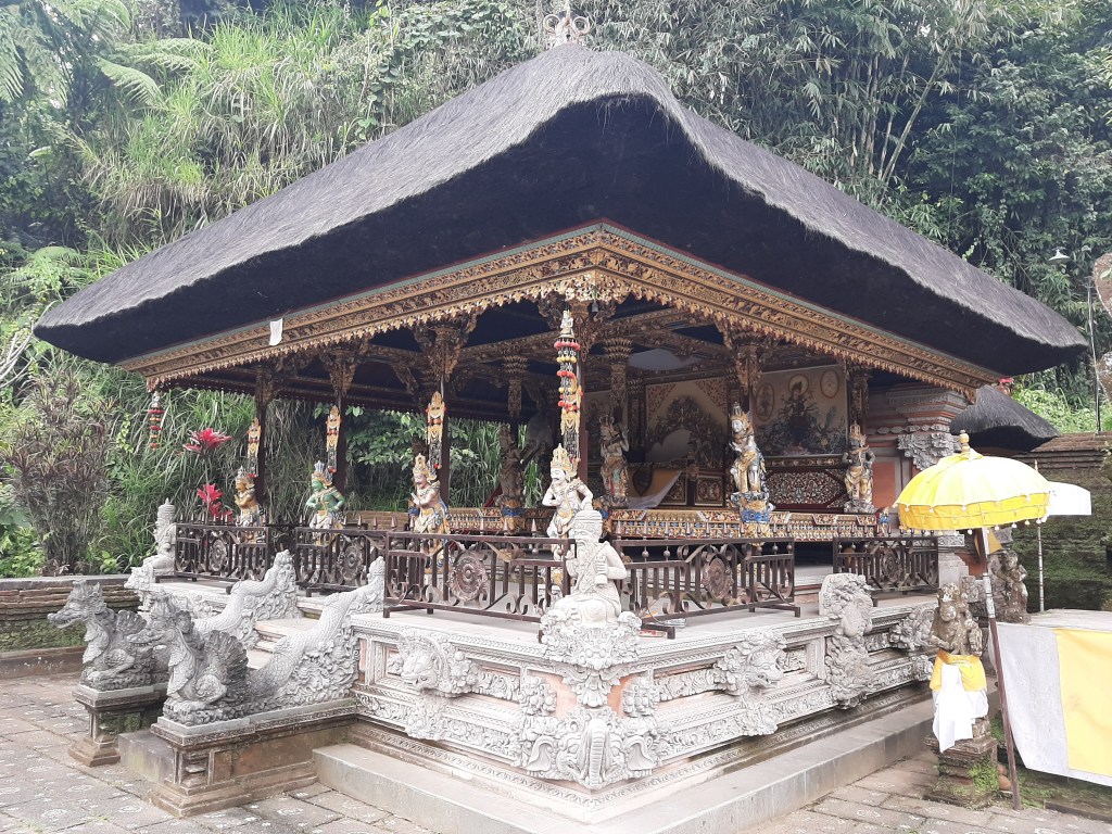 We continue our tour, still north to the temple: « Gunung Kawi Sebatu ». It’s a pretty authentic temple that is fairly well maintained. Entrance is payable at 10,000 Rp (0.7 €) per person, rental of Sarong included. There are small pools with fish, places of worship, and 2 swimming pools (1 for women, the other for men) where locals come to take a bath for 2,000 Rp (13 cents €)!