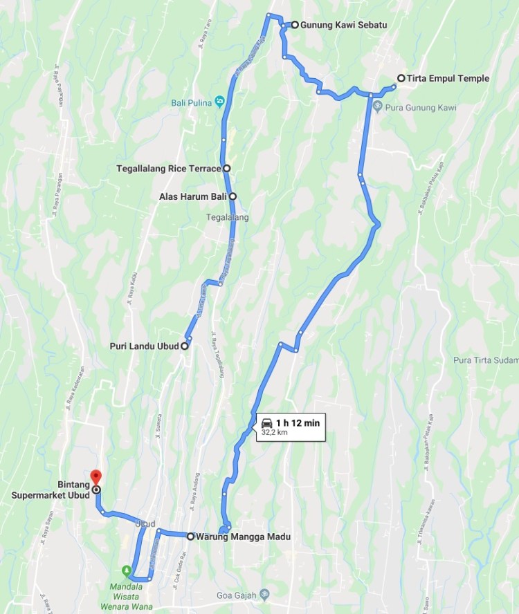 We take our scooter and we go to the north. Program of the day: Alas Harum (Balinese coffee discovery area, Bali Swing…), Tegallalang rice terraces, Gunung Kawi Sebatu, Tirta Empul Temple, Ubud center :