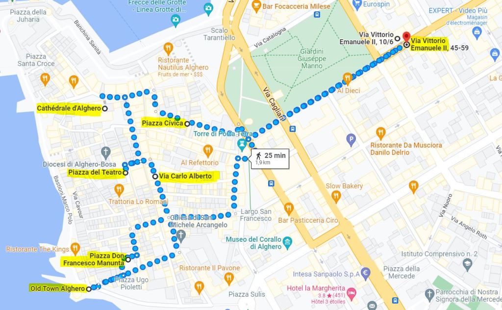 After a short nap, we go to the historic center of Alghero to spend the evening. We find a parking place on the street : Via Vittorio Emanuele (40°33’35.6″N 8°19’05.3″E).