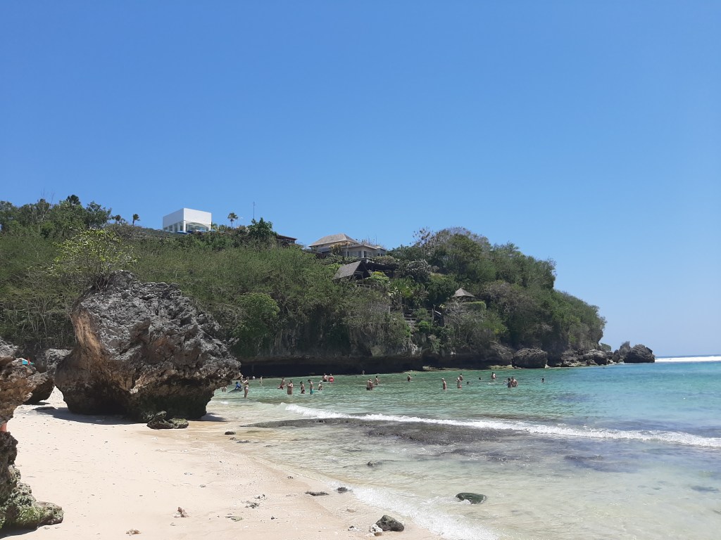 We leave for the beach of « Padang Padang Beach ». You have to pay 15,000 Rp (1 €) per person to access the beach.