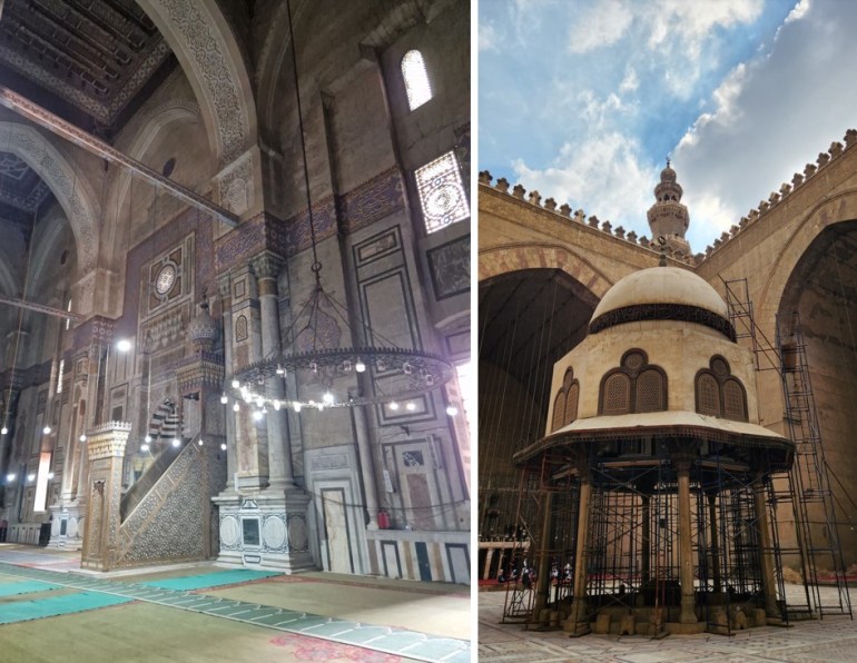 We take a taxi for 50 EGP towards the Rifa’i Mosque and the Madrasa of Sultan Hassan