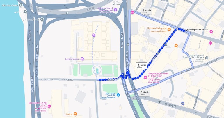 After breakfast at our hotel, we leave for the Egyptian Museum. Another positive point of our accommodation. It is located 400 meters from the museum.