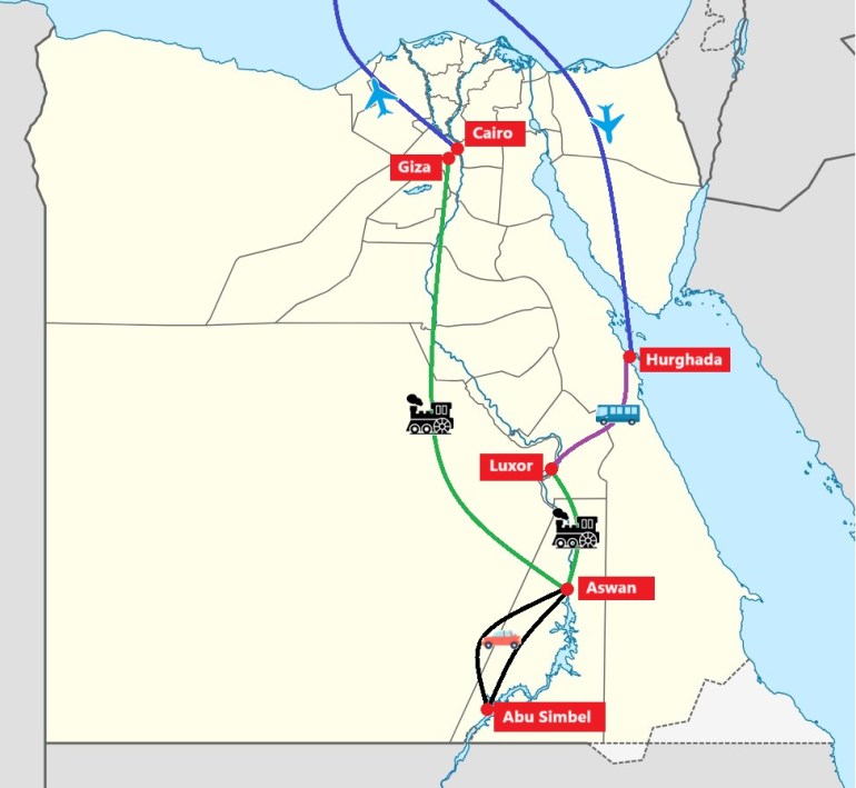 We visited Hurghada, Luxor, Aswan, Abu Simbel, Giza and Cairo