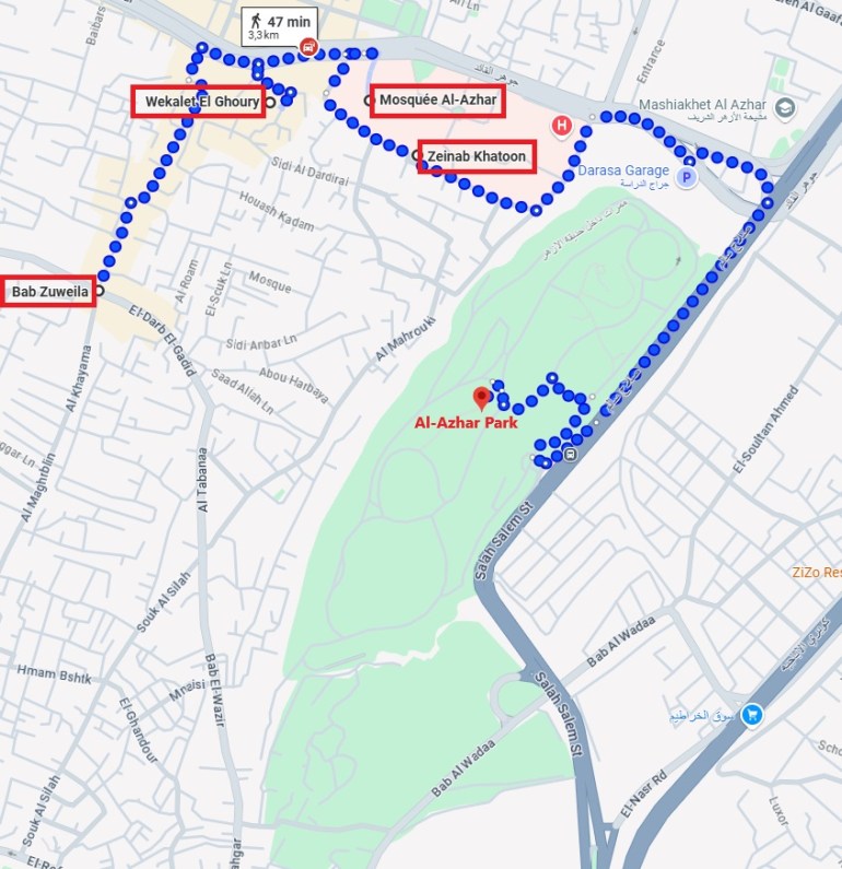 Nous prenons la direction du parc Al Azhar
