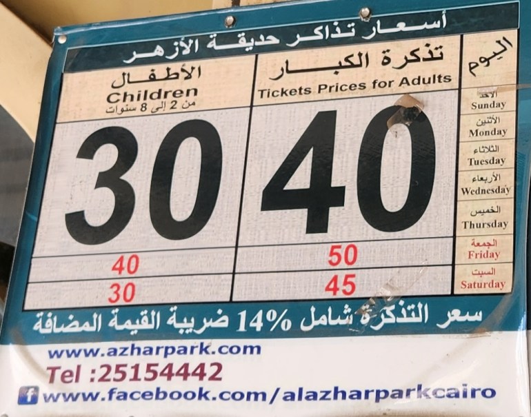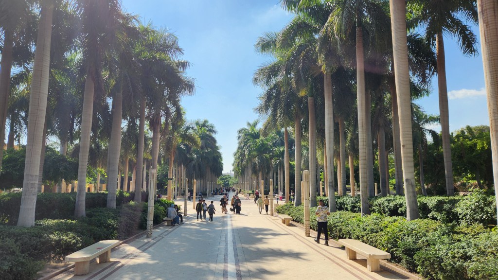 Nous continuons vers le parc, payons 50 EGP (1 €) par personnes et accédons au poumon de la ville.