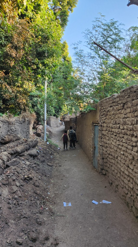 Nous profitons du calme matinal pour faire un petit tour dans les ruelles de l’île au milieu des écoliers, des paysans et des animaux de la ferme. C’est vraiment un coin authentique de l’Égypte.