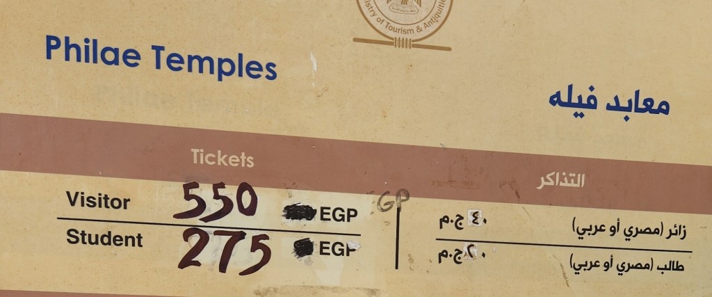 En arrivant au parking du temple, nous achetons nos tickets d’entrée pour 40 EGP : 0,8 € par personne (prix spécial arabes). Le prix normal est de 550 EGP : 11 €