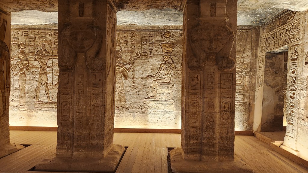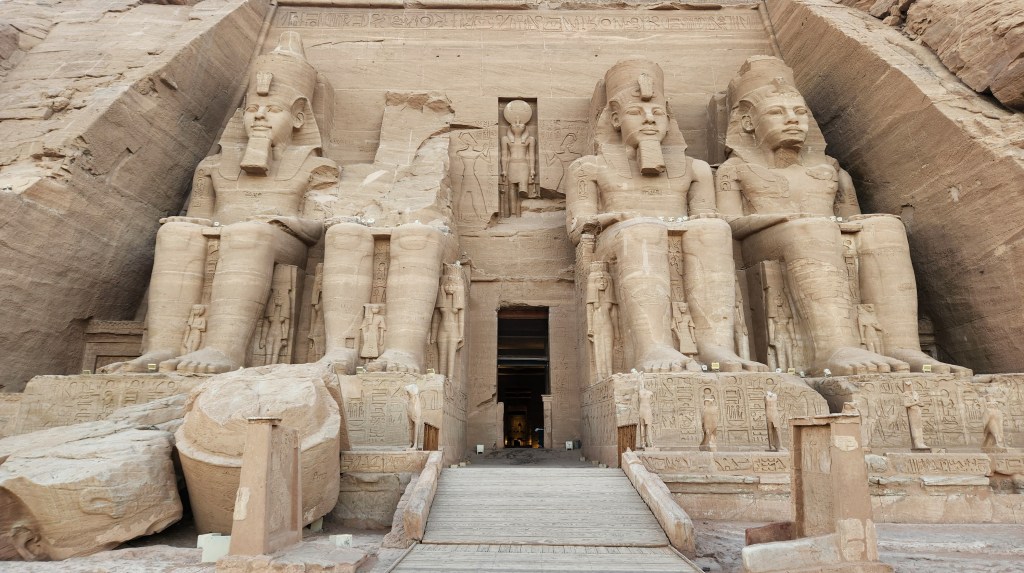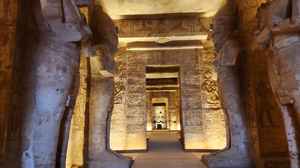 Il faut savoir que, comme le temple de Philae de Aswan, le temple de Abu Simbel a été entièrement découpé et déplacé par l’UNSECO afin d’éviter son engloutissement par le lac Nasser suite à la construction du haut barrage.