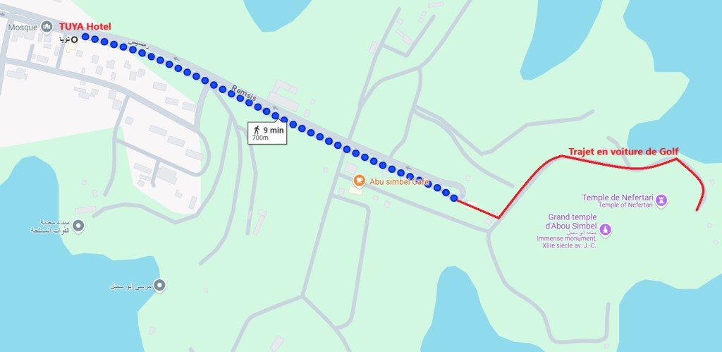 Nous partons pour la visite des fameux temples de Abu Simbel. Notre hôtel est idéalement situé à 700m de l’entrée des temples. Vous pouvez faire le trajet à pied ou facilement trouver un Tuk-tuk pour 10 EGP (0,2 €)