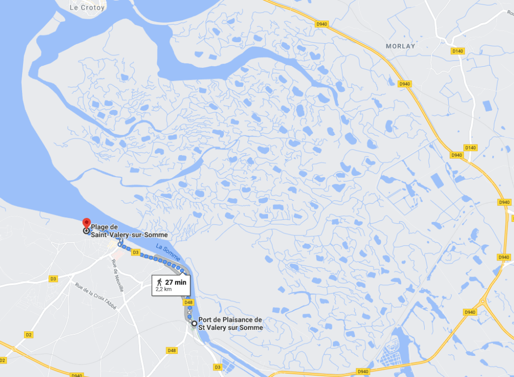 Programme du jour : Aller voir la baie de Somme et les plages de la côte d’Opale. Premier arrêt : Saint-Valery-Sur-Somme pour voir la baie de Somme. Nous nous sommes garés au port de plaisance et avons fait une bonne marche de 30 minutes pour admirer la baie :
