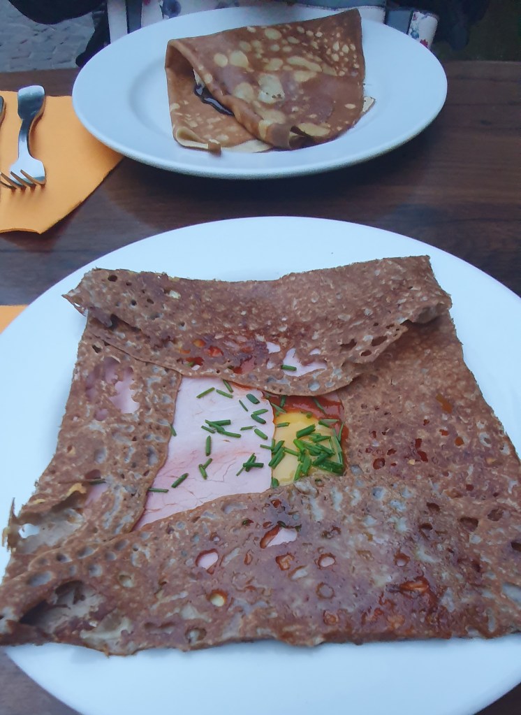 Pour manger, nous nous laissons tenter par une crêperie dans la rue « Eau de Robec » : « La Cornaelle » (49°26’29.4″N 1°06’01.4″E)