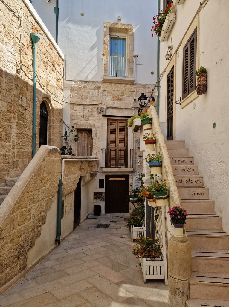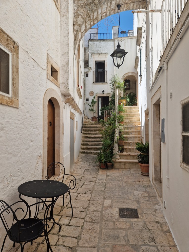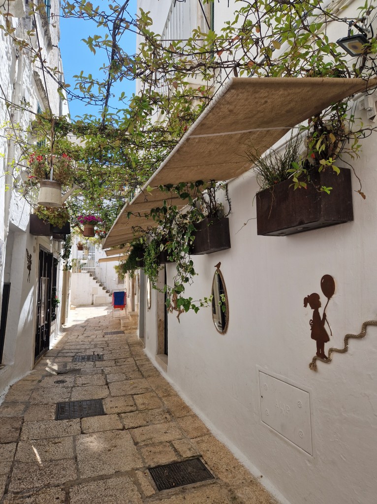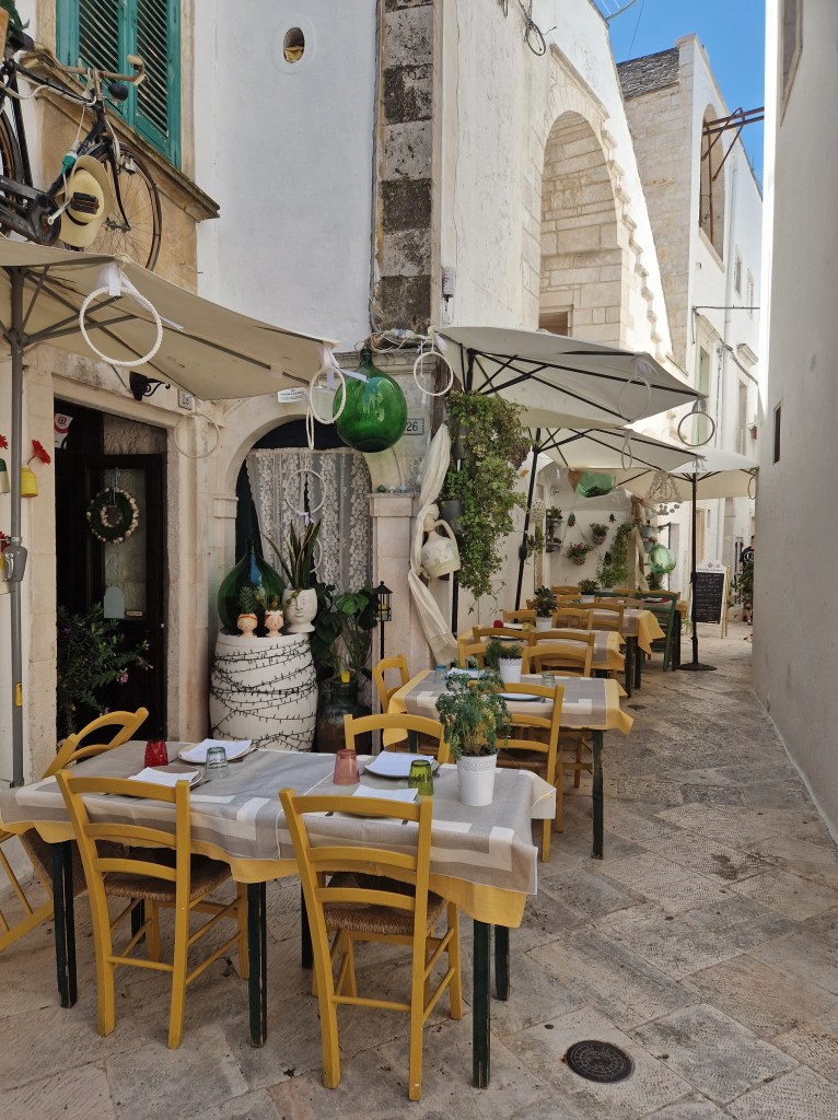 For lunch we choose a small restaurant with a terrace in a shaded alley: Ombre E Fioi (Via Montanaro, 2, 70010 Locorotondo). Everything is perfect: the service, the food, the view …
