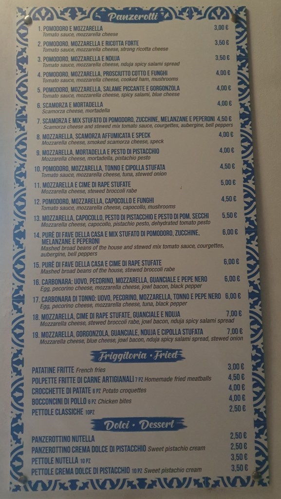 Before leaving Monopoli, we have some Panzerotti at« RE Umberto » (40°57’03.6″N 17°18’16.6″E).