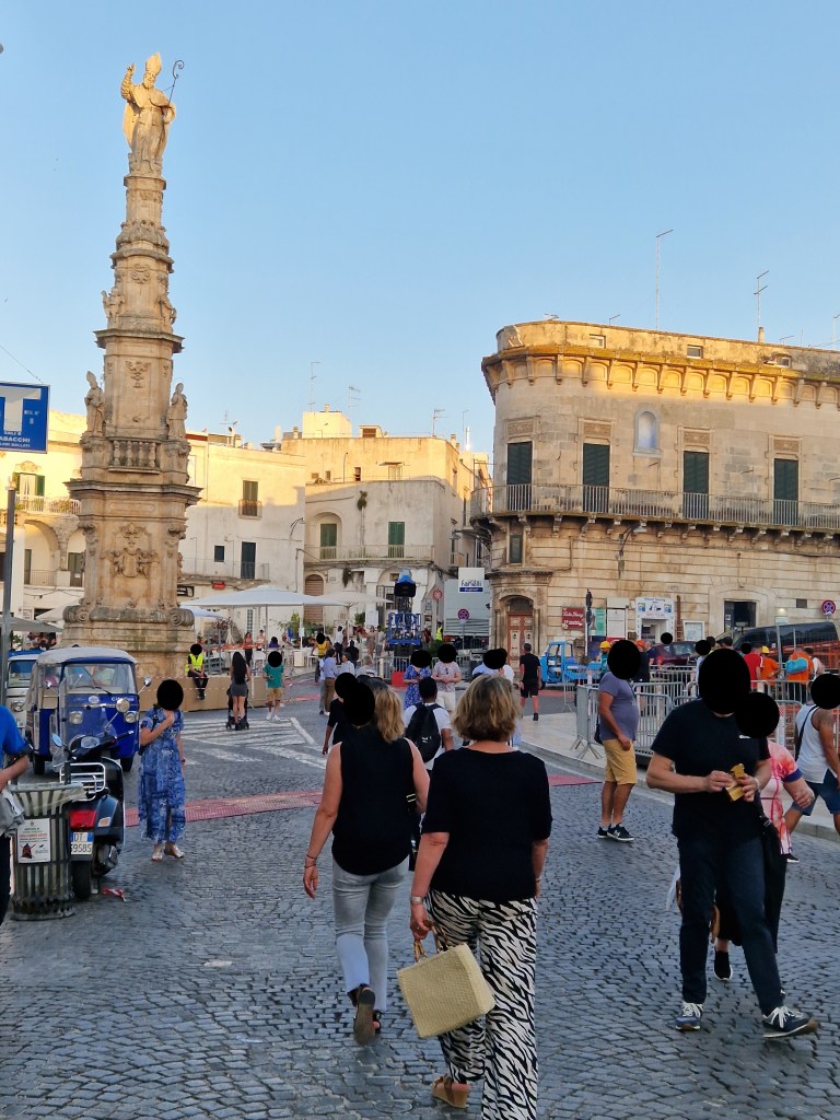Our tour in Cisternino is cut short by the heat and fatigue, but we still enjoy this charming village with a delicious ice cream in the picturesque square « Piazza Vittorio Emanuele II »