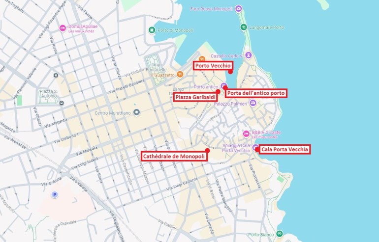 The beach “Lama Monachile” is the postcard of the city. It is a beach between 2 cliffs. You can access it but also see it from the Lama Monachile viewpoint (40°59’49.1″N 17°13’07.3″E)