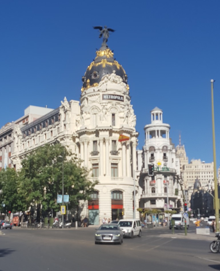 In is a very lively district of Madrid whith restaurants, cafes and shops. The Edifice Metrópolis building is recognizable with the Schweppes brand sign