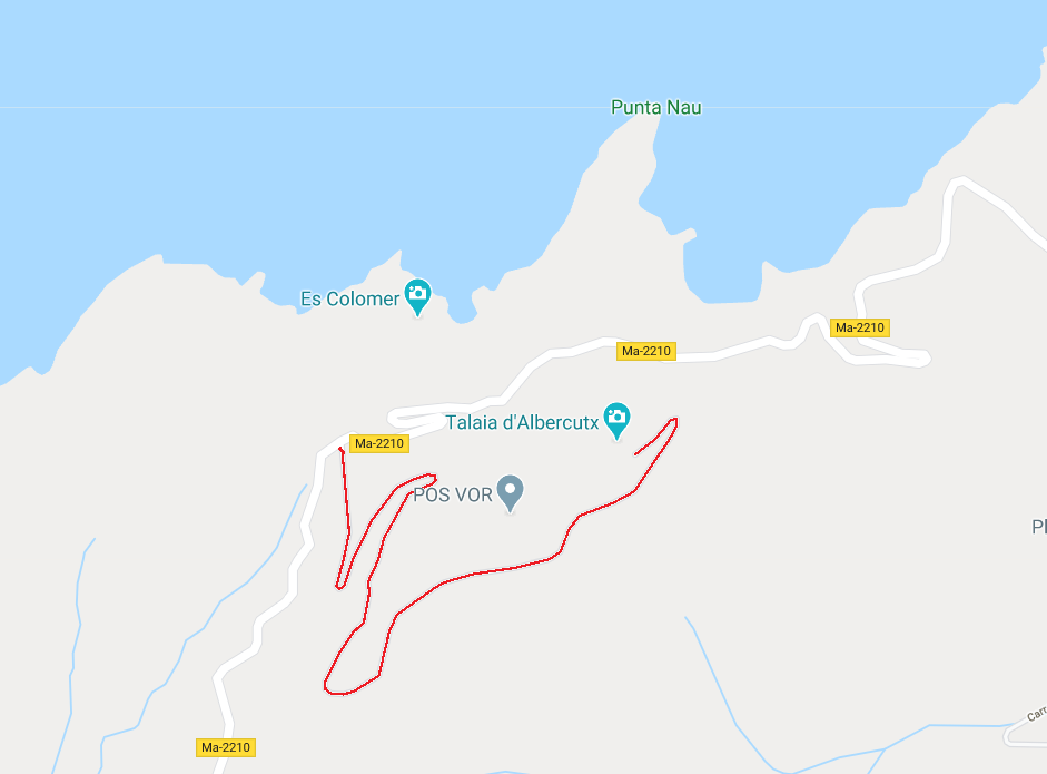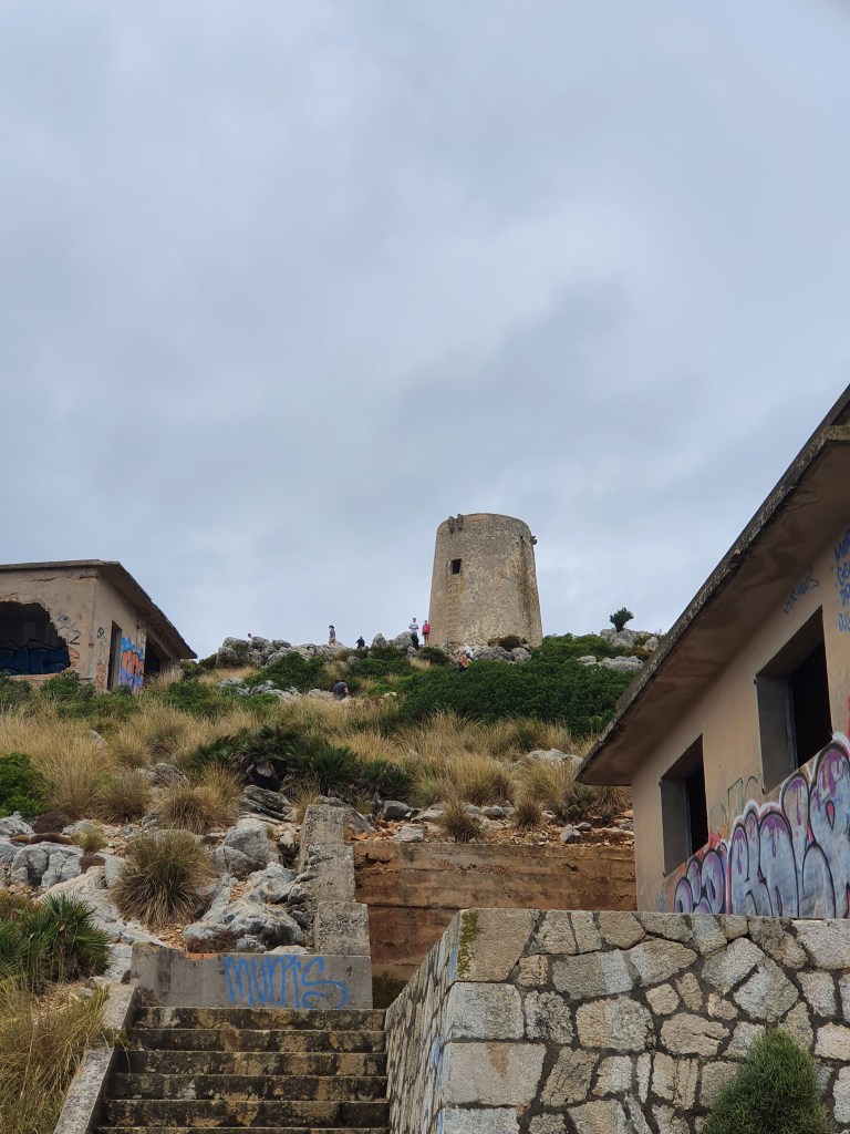 In front of the parking, you can go up by car to the watchtower of Albercutx. The road is even narrower. It stops at the foot of the tower (39°55’42.4″N 3°07’05.4″E).