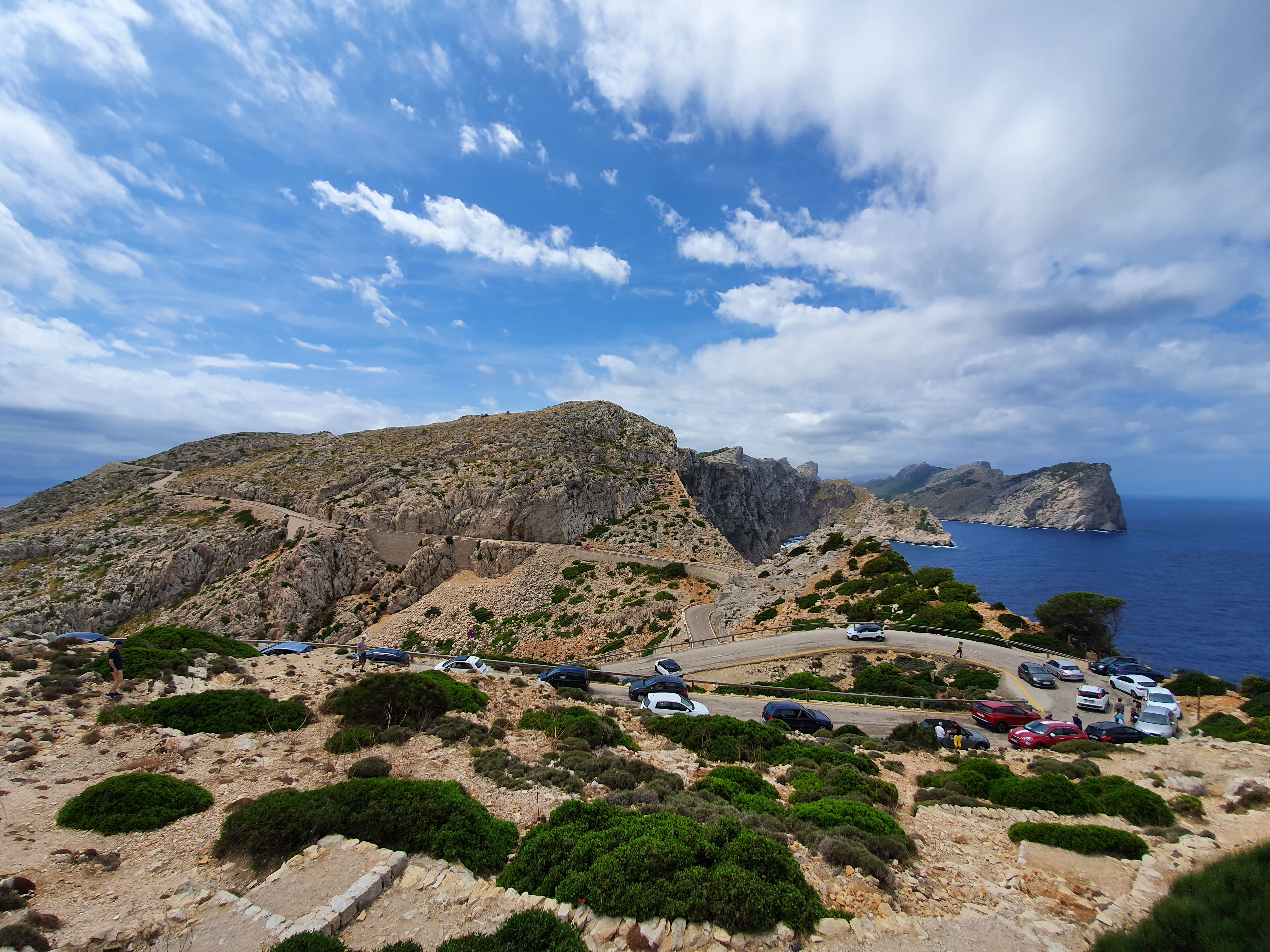 Our first stop in « Cap de Formentor » is the « Mirador Es Colomer » (39°55’51.8″N 3°06’44.5″E). Free parking places are available next to the Mirador, but places are limited. The view from the mirador is breathtaking and offers a mixture of sea – mountain – magnificent road :