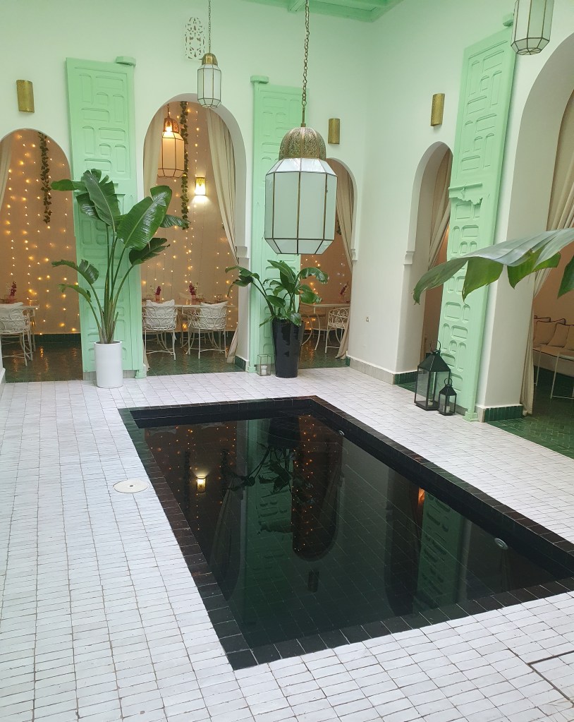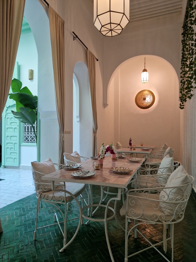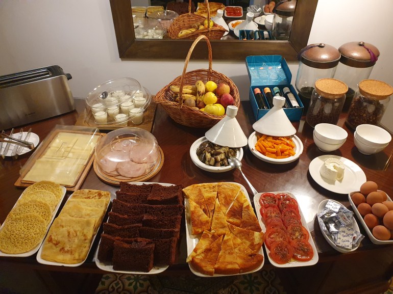 C’est notre jour de départ du Maroc. Nous prenons le petit déjeuner dans notre magnifique Riad
