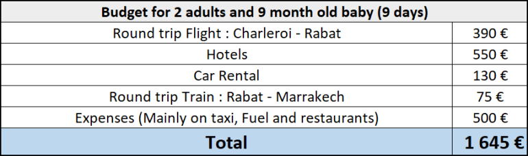 Our Budget for 2 adults and a baby under 9 months was €1,645 for 9 days :