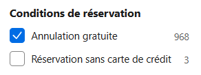 En plus de tous ces filtres, vous pourrez également choisir une tranche de prix (par nuit ou pour le séjour complet)