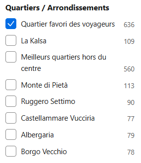 Si vous ne connaissez pas bien la ville et vous hésitez à choisir le quartier de votre hébergement, souvent le filtre « Quartier favori des voyageurs » peut vous aider
