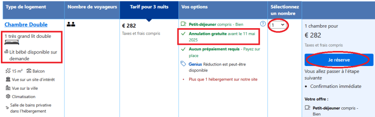 Avant de réserver, vérifier aussi la date limite d’annulation gratuite, les lits proposés…