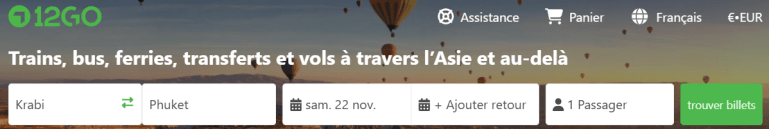 Pour nos réservations de trajets en bateaux en Asie, nous avons eu recours à 12GO : https://12go.asia/