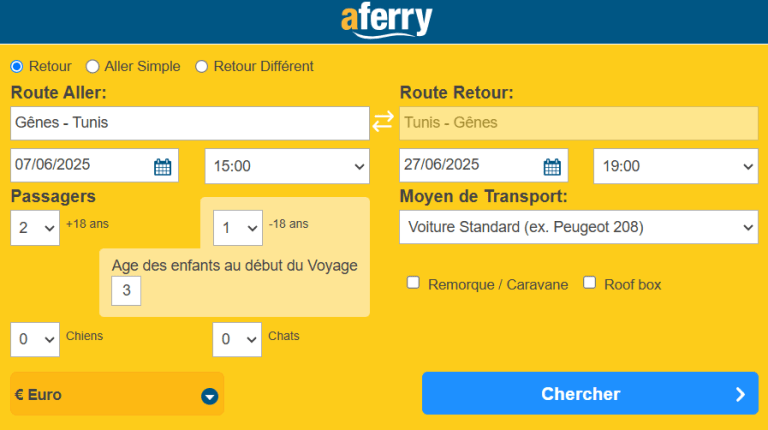 Un autre outil de recherche est « aferry » : https://www.aferry.com/