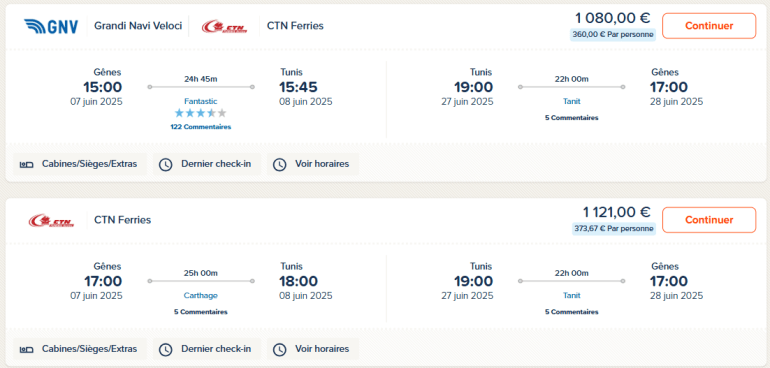 Pour les traversées en méditerrané, vous pouvez regarder directement sur les sites des compagnies qui peuvent proposer des promotions non visibles au niveau des comparateurs. Voici quelques compagnies opérant en méditerrané :