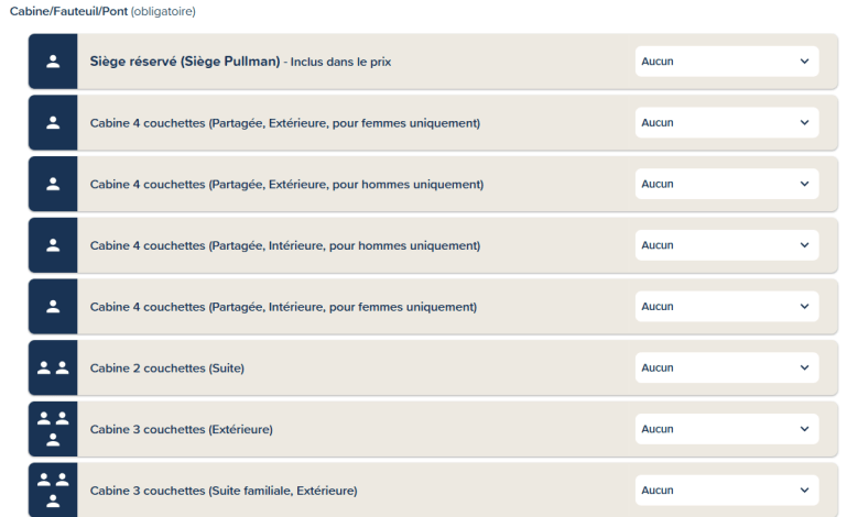 En choisissant la traversée qui correspond à vos besoins, vous pourrez choisir, si pendant le voyage, vous souhaitez avoir une cabine ou juste un fauteuil dans l’espace commun