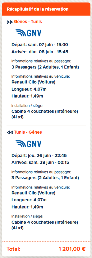 Le résumé de votre réservation vous sera affiché avant de procéder à la réservation