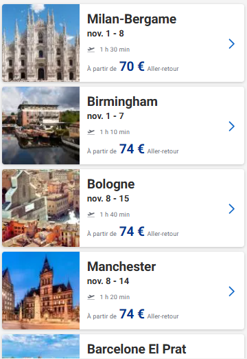 Si vous cherchez une idée de destination, vous pouvez commencer par saisir la liste des villes ou des aéroports de départ. Vous pouvez en saisir plusieurs.