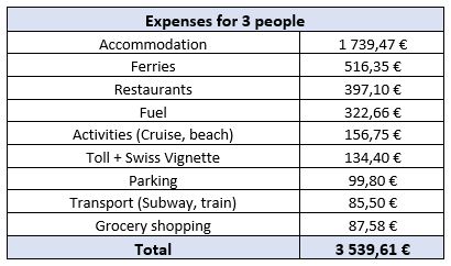 We were 3 persons for this road trip for a total cost of € 3,540 :