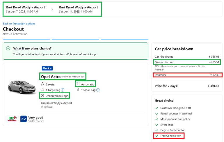 Feedback: in Majorca, our rental company forced us to take out their insurance and showed us a document indicating that during the high summer season (July – August), this insurance is mandatory. Between this choice or canceling the rental, we paid for this insurance and we provided the necessary evidence to Booking.com in order to have a refund of the insurance amount. (Booking.com’s insurance)